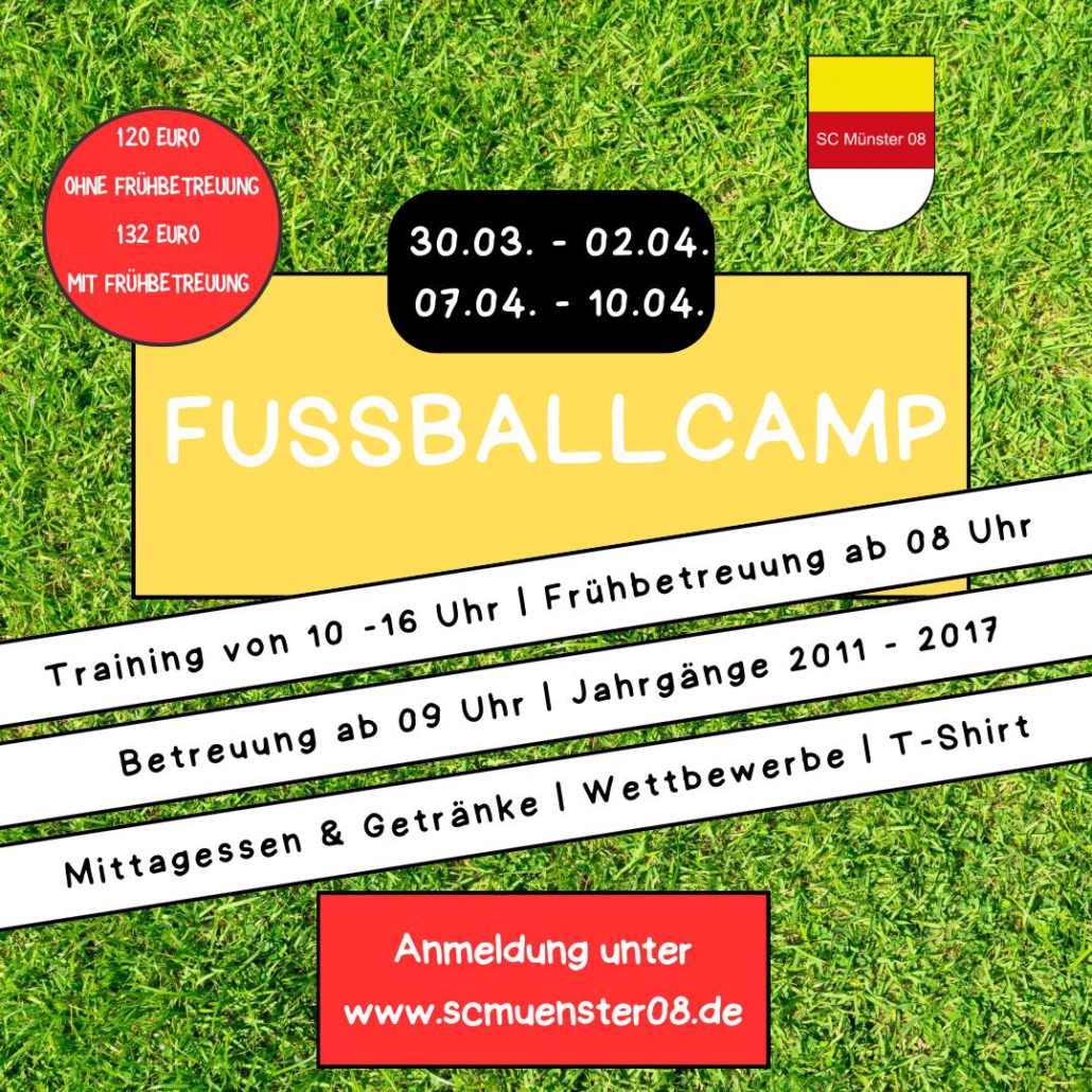 Fußballferiencamp Ostern – noch freie Plätze10. März 2026/in Verein/von Mitarbeiter Es sind noch freie Plätze zu vergeben. Hier geht es zur Anmeldung: Fußballcamp – SC Münster 08 https://www.scmuenster08.de/wp-content/uploads/2026/03/IMG-20260310-WA0006.jpg 1080 1080 Mitarbeiter https://www.scmuenster08.de/wp-content/uploads/2017/03/Wappen.png Mitarbeiter2026-03-10 19:48:362026-03-10 19:48:44Fußballferiencamp Ostern – noch freie Plätze