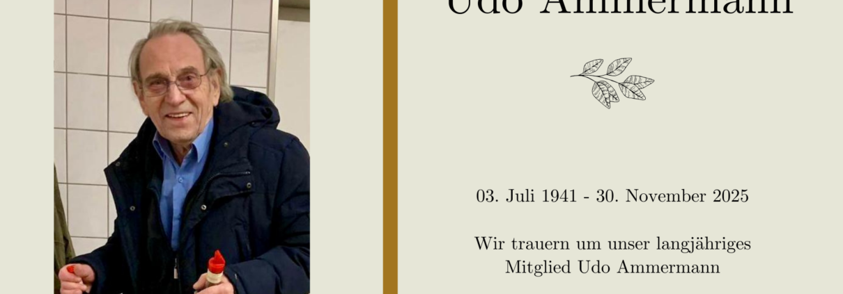 Wir haben mit größtem Bedauern erfahren, dass unser langjähriges Vereinsmitglied und ehemaliger Wirt unseres Vereinsheims Udo Ammermann am 30.11.2025 im Alter von 84 Jahren verstorben ist.
